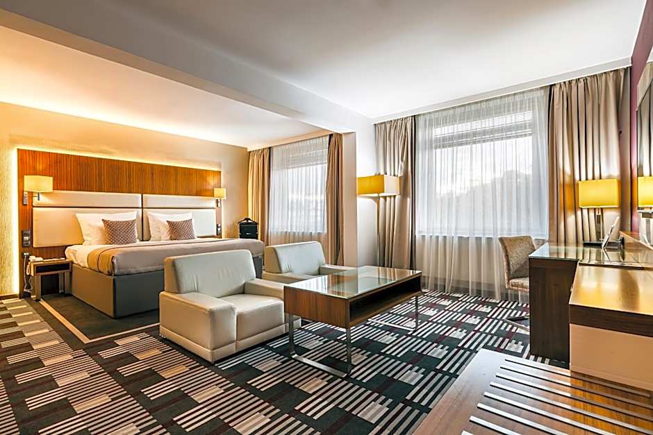 The air-conditioned suite features 1 bedroom and 1 bathroom with a bath and a shower. The suite offers soundproof walls, a mini-bar, a tea and coffee maker, a flat-screen TV with satellite channels, as well as city views. The unit offers 1 bed.
